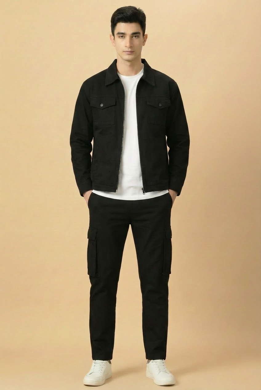 Revorn Shacket – Full Black Zipper Jacket & Cargo Trouser